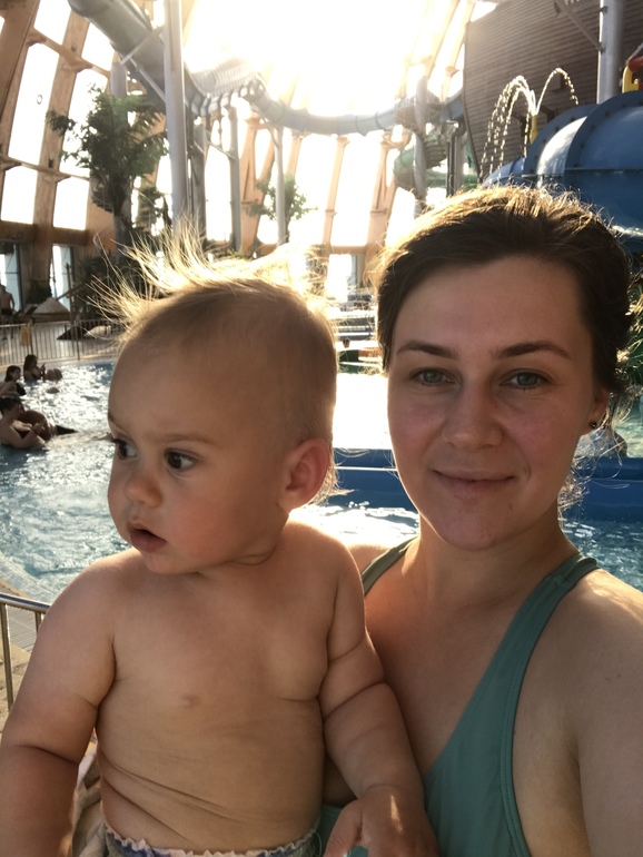 После плавания мы пошли на городок, а наш папа пошёл на горки покататься, пока на набежала очередь. Ну а после мы ходили в баню греться, плавали все вместе, спускали Илюшу с горок в детском городке, фоткались, полдничали и умотали ребёнка так что он захотел спать. Я выбрала самый укромный шезлонг перед большим окном с видом на акваторию Невы и мы легли отдохнуть. Илюша отрубился на груди через пять минут и проспал целый час, так устал. Я валялась, отдыхала и принимала поздравления с его днём рождения. Наверно так спокойно, тепло и радостно в душе мне не было давно 😌 вот сопит на груди мой самый любимый человек, я наконец-то поплавала как хотела ещё будучи беременной (но из-за пессария мне было нельзя в воду), и в целом день рождения удался.