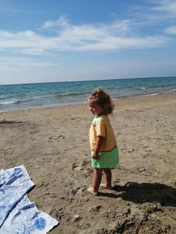 Ездили на море на машине, только под конец они обе начали буянить, устали. Кормила иногда прям в пути, наклонясь над креслом 😅 Катя к купанию отнеслась лучше, чем Валя в 7 месяцев в Турции. В сентябре здорово, людей немного, тепло, не жарко. Но цена качеству не всегда соответствует, поэтому вместо двух недель были только одну, в Крым не поехали. Были в Благовещенской и в Тамани (на пляж ездили в Веселовке).