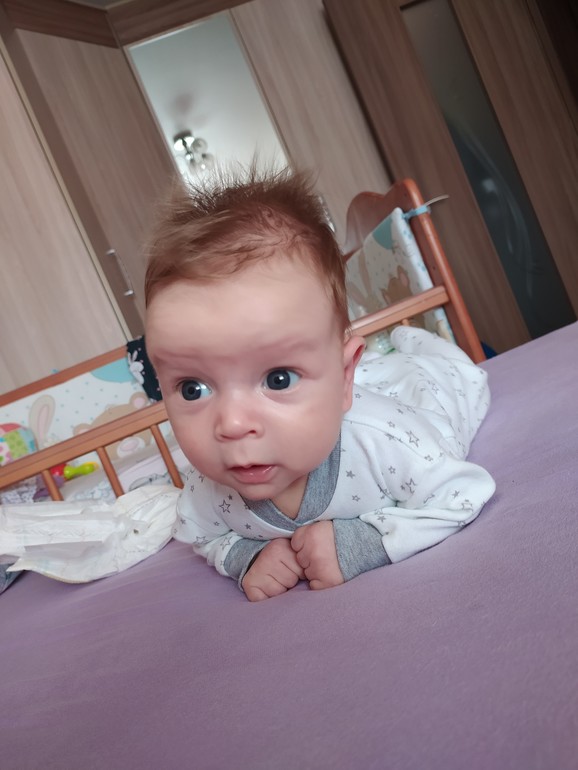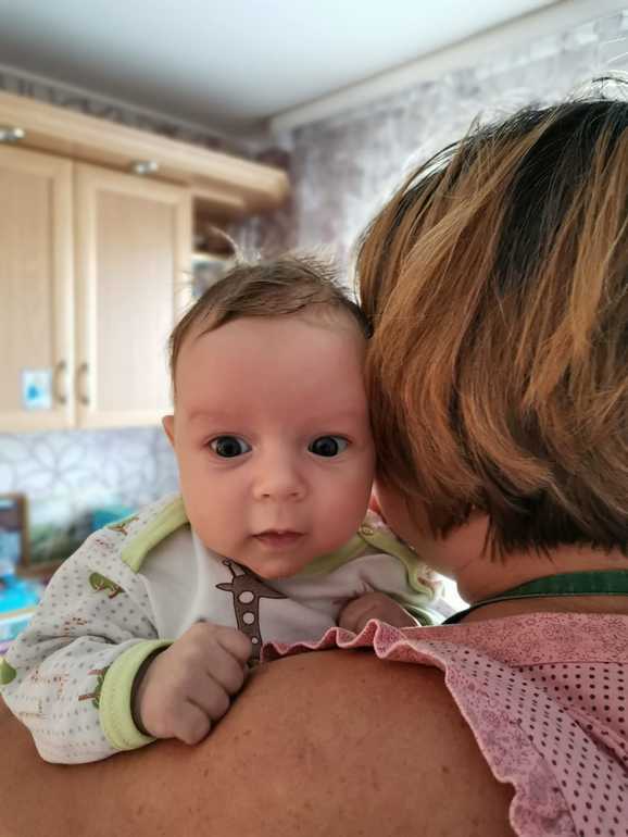 Диету не соблюдаю,правда от шоколада отказалась(меня аж колбасит без него,хочууу сладенькое),на щеках аллергия высыпала🤔 Немного о Мишутке: кривошеи и привычного положения шеи уже нет, сам вертит головой во все стороны, улыбается во всю (особенно мне на мой голос) В мес и 3 недели уже в голос заржал,дочь сидела рядом,он ее увидел и давай ржать ,я аж прослезилась. Гулит вовсю,агу уже сказал,постоянно какие-то звуки издает😁Голову еще пока неуверенно держит, на животе минуты 2 держит, любит на ручках ходить столбиком,ношу прям немного,все-таки еще тяжело для него такая поза. Стал спокойно сидеть в автолюльке мин 15 в среднем,я игрухи повесила,ручками тянется, достает, разглядывает,а я сижу рядом, кушаю,либо готовлю. Во время бодрствования постоянно ногами и руками машет,как-будто марафон бежит😁 Вроде как режим проклевывается,встаем в 7-8 утра, через часик снова спит (самый лучший сон у него с утра,может проспать потом часа 4,я дома все успеваю сделать), после обеда иногда мучают колики и газики,потом на сон уходит в 8-9 вечера,ночью кушает 2 раза. Спим пока вместе (мужа выселила , как будет вставать и ползать ,выселю в кроватку,днем конечно в кроватке. Сравнивая дочку и сына,тьфу тьфу спокойные детки,со сном проблем нет,колики конечно меньше значительно с сыночком🤗Кстати,перестала давать все препараты,что с ними,что без них,одинаково.Может еще препараты симетикона крепят? Эх,вес мой так и встал,68 кг (еще надо 4 кг скинуть)😭 Ночами не сплю, постоянно думаю о переезде...Благо,в соседнем подъезде купили квартиру, буду по-тихоньку все таскать,мыть,просто с маленьким ребенком не знаю даже как это...Помощи нет,родители работают,муж тоже сутки через сутки,правда в ноябре 2 недели отпуска у него,вот как раз будем таскать.Каждый день еще штудирую инет,не знаю,какую кухню цветом заказать☺️ Ну и фото (много фото)
