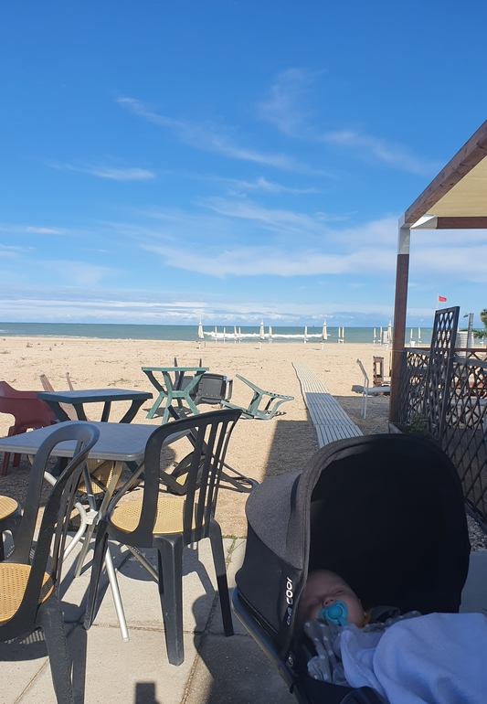 Пересели в 4, когда ехали на целый день в парк аттракционов, до этого, на море в люльке, а супермаркет и какая-то быстрая прогулка автокресло.
