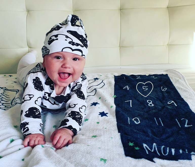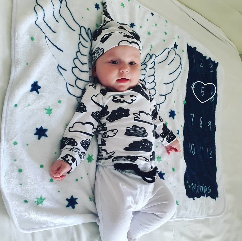 Планировала активно учить его переворачиваться и через левую сторону тоже, но с начала 2 дня температуры после прививок, потом какой-то не спокойный был, потом 2 дня соплей, сейчас второй день кашель, по - этому стараюсь, что бы он как можно дольше спал и набирался сил.