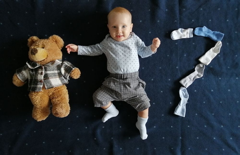 В целом Ванюша спокойный хороший малыш, очень самостоятельный, развлекается сам. Главное убрать лоток кота, миску с кормом и воду, а потом ползай себе на здоровье везде. Иногда бывают капризные дни и частое нытье, обычно когда муж дома весь день. Ваня так папиного внимания требует видимо) Вот с папой и развлекаются. Напрягает что лепета нет, есть только крики, аканье, агуканье и бдррр при катании машин. Всякие кряхтения, все тоже самое, что и в месяц. Может ему просто не до разговоров пока, слишком многому научился в сентябре. Надеюсь октябрь будет разговорным.