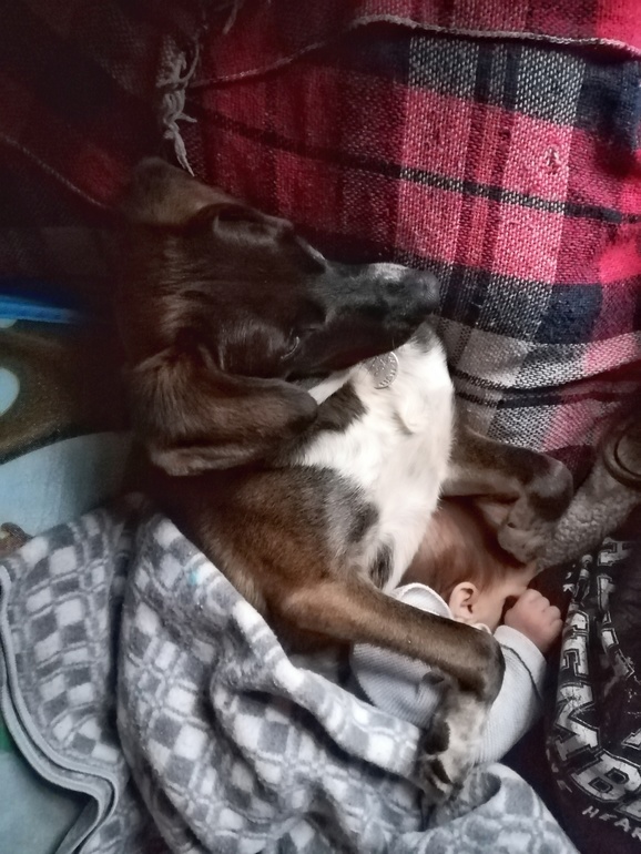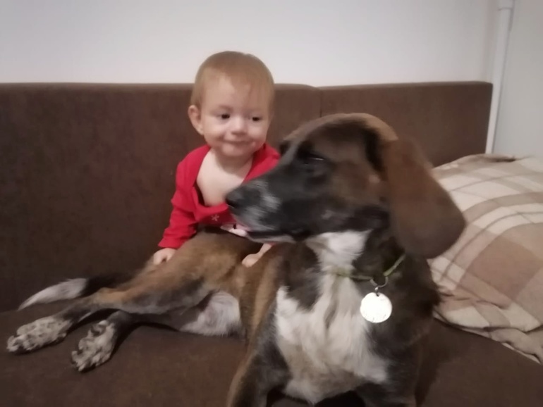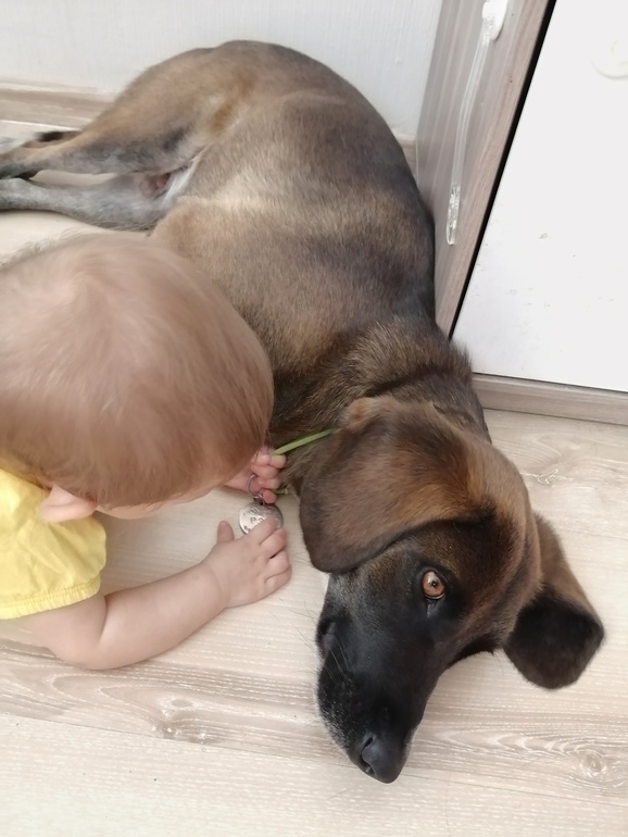 Недавно соседи удивлялись, что Катя собак не боится. Просто гуляли собачьей компанией, и её все норовили в нос лизнуть. Наверное, молоком пахнет, но Катя в целом не против. Наш к ней относятся очень лояльно, даже Вале многое не позволяет из того, что можно младшенькой.