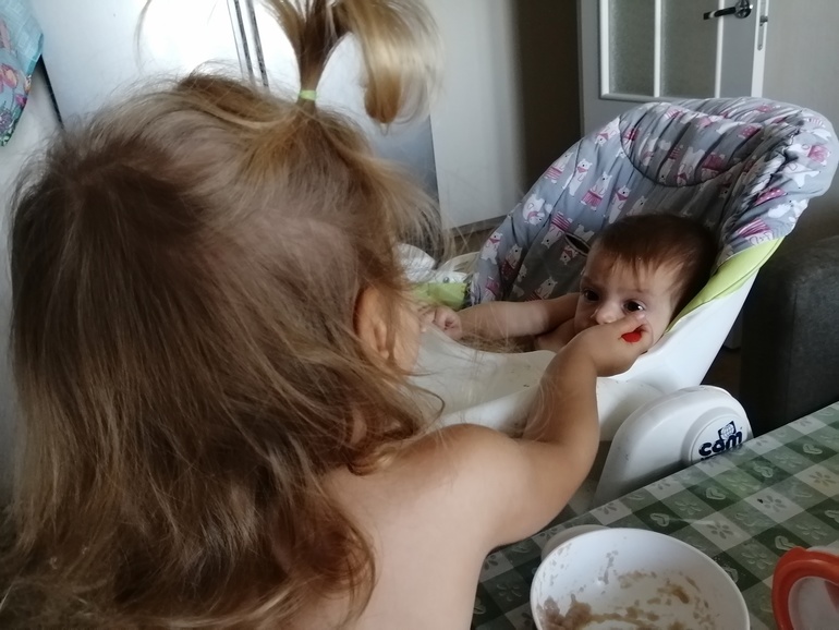 Девочки всё также дружны, тьфу-тьфу-тьфу. Со скидкой на возраст, конечно, поговорить ещё не чем. Хотя иногда на одной волне начинают визжать, Катя что-то кричит, Валя повторяет 😅