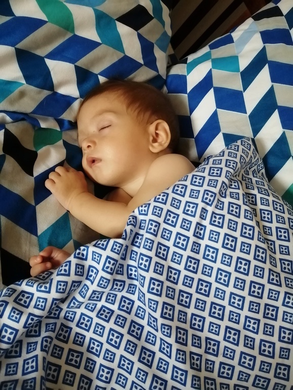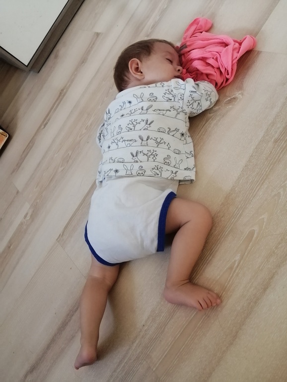Потихоньку понимание приходит, к концу этого месяца она всё-таки реже стала заваливаться - может, действительно думала сначала, что на кровати же мягко, почему здесь твёрдо 🤔 Мы стали ещё меньше её успокаивать, не сразу на ручки, а перевернём обратно или поможем просто, и она сама в себя приходит