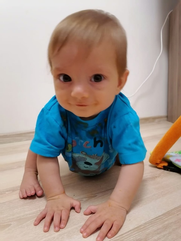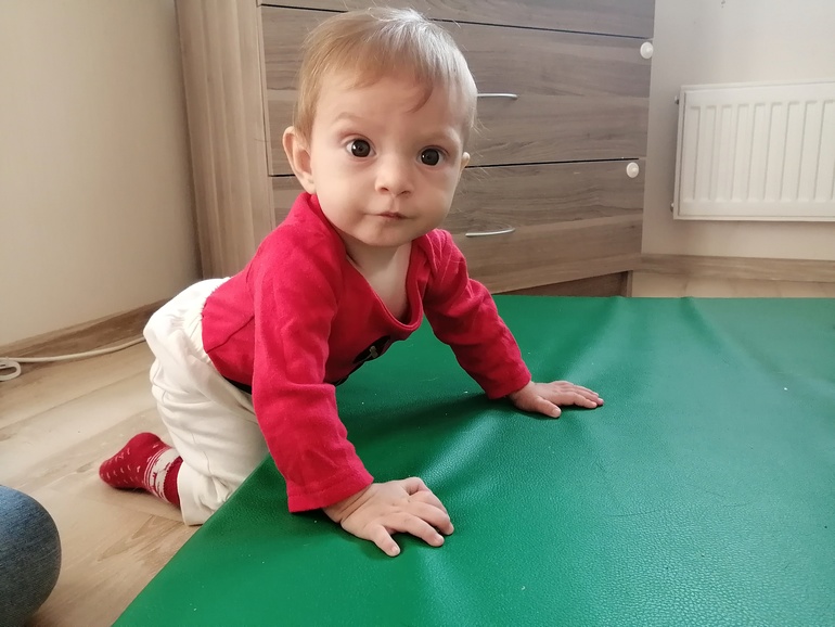 За этот месяц Катя стала увереннее ползать (всё ещё как лягушонок), сидит, стоит у опоры. Но есть у неё удивительный талант падать из любого положения на спину. Она даже на четвереньках может стоять устойчиво и внезапно оказаться на спинке 🤦🏻♀️