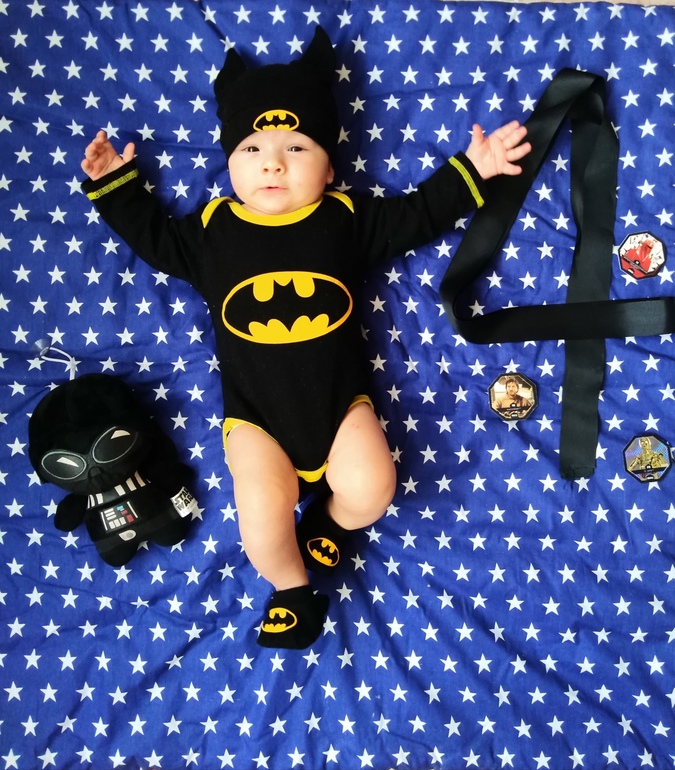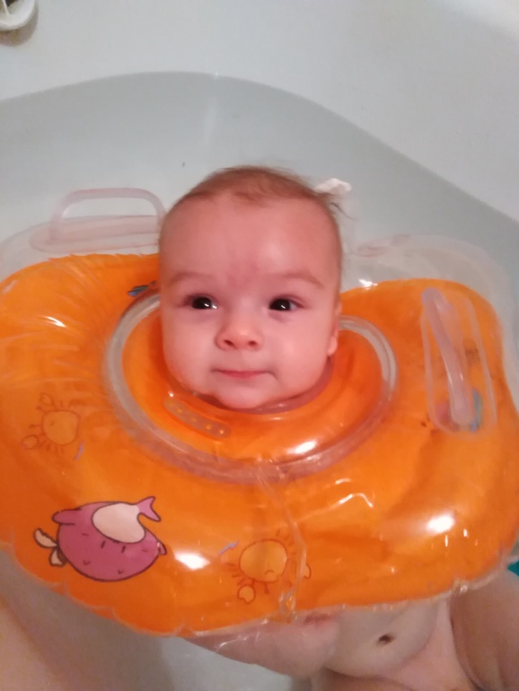 4. Игрушки ему мало интересны, зато интересны люди. Абсолютно все. Он бы круглые сутки смотрел людям в глаза и улыбался. Вообще весёлый малыш. Визжит, улыбается, немного хихикает. Сосёт пальцы. Один лежать не особо любит, ему нужна компания, но я приучаю самостоятельно себя развлекать.