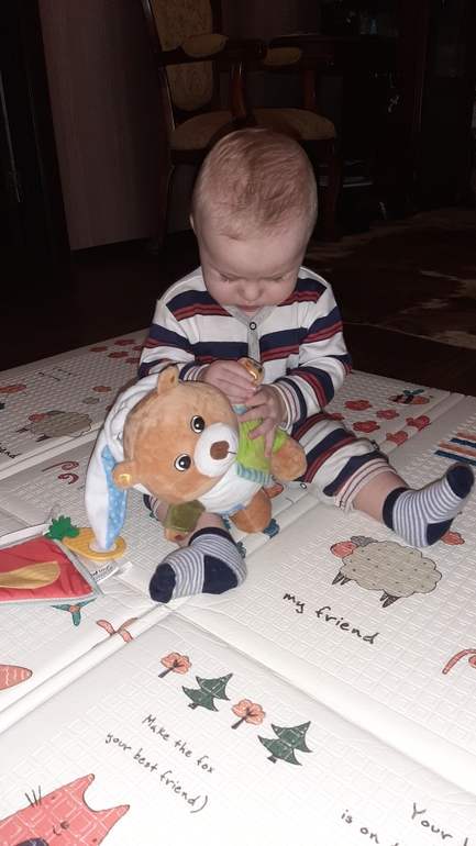 Болтает без остановки, очень эмоциональный парень) отчётливо вырисовывается ма-ма-ма, когда пытается привлечь мое внимание! Любит слушать как говорят животные и вообще воспринимают только музыкальные и говорящие игрушки, последний хит - это мультикуб😍 от души всем рекомендую, просто бесподобная игрушка, думаю ближайшие полгода будет в фаворитах у Ромки)