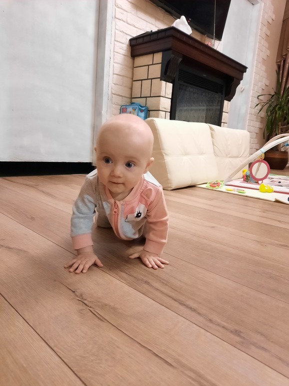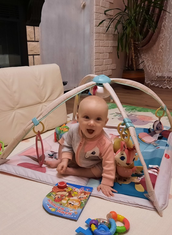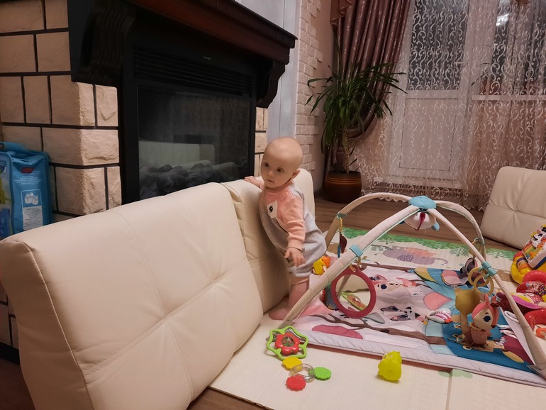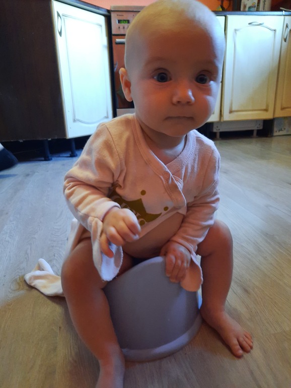 Ну а сегодня она такая вся самостоятельная, ползает по всей квартире, играет с игрушками, тискает собаку. За последнюю неделю как то резко повзрослела. Ну и еще я мать садистка, всю эту неделю вижу какать собирается и сразу сажаю на горшок, и у нас все получается )))