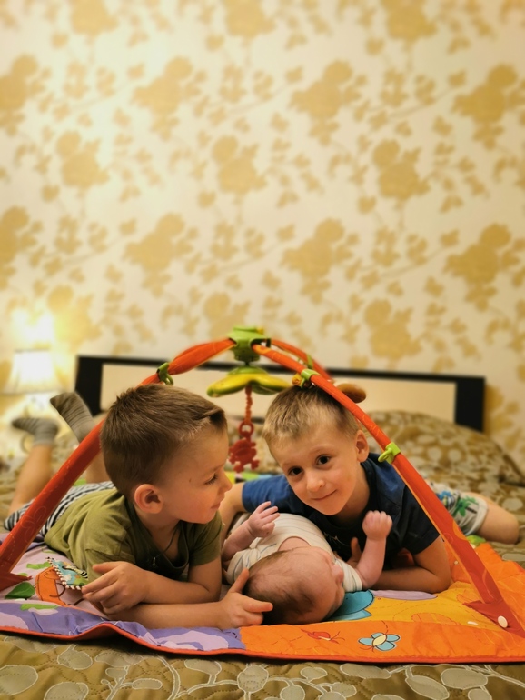 С тремя детьми очень сложно, особенно сейчас, когда в саду воспитатели позаболели ковид, и приходиться мариноваться дома всем, еще особо без улицы, потому что дожди и мерзко. Когда мальчики ходили в сад на весь день, казалось, что все не так уж и плохо)
