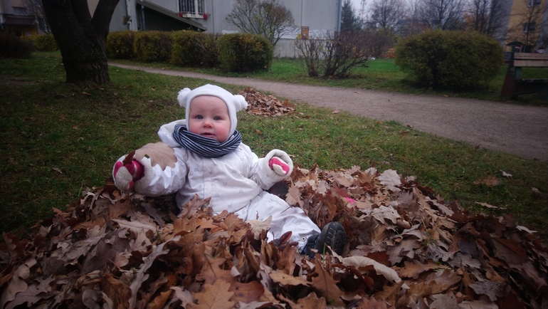 Падала много в этом месяце. Даже с коляски завалилась, вот тебе и 3 колеса у коляски, вроде такой устойчивый танк Бритакс, а вот с поребрика неудачно съехала однажды, испугалась девочка... Брат ронял пару раз, проводим с ним беседы, что маленькая, он ее везде таскает, на плечах часто... сердце сжимается каждый раз, но не давать не могу, все же ответственность приходит со временем.