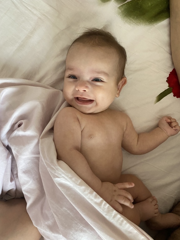 И реально 4-ый месяц стал самым активным в ее умелках. Она стала очень любить когда с ней разговаривают, выгибает спинку и таким образом на ручки просится, освоила переворот на живот за неделю до 4 месяцев. Это было так прикольно, муж положил ее на кровать переодеть, развернулся взять памперс и слышу кричит : «зааааай, бегом беги сюда» прибежали и я и дочь( он ее тоже иногда зайкой называет) а Майюша лежит на животе, говорит «разорачиваюсь, а она лежит», потом ещё пол часа она крутилась, показывала как умеет и такая довольная от этого была, пока только через правую сторону. мы взяли курс 3-6 месяцев Новокривицкого, так что его заслуга в этом тоже есть, реально хорошие занятия. И купаемся в малом количестве воды, ей так нравится, плескается там, улыбается во всю) в связи с этим продаём свою любимую ванночку beaba.
