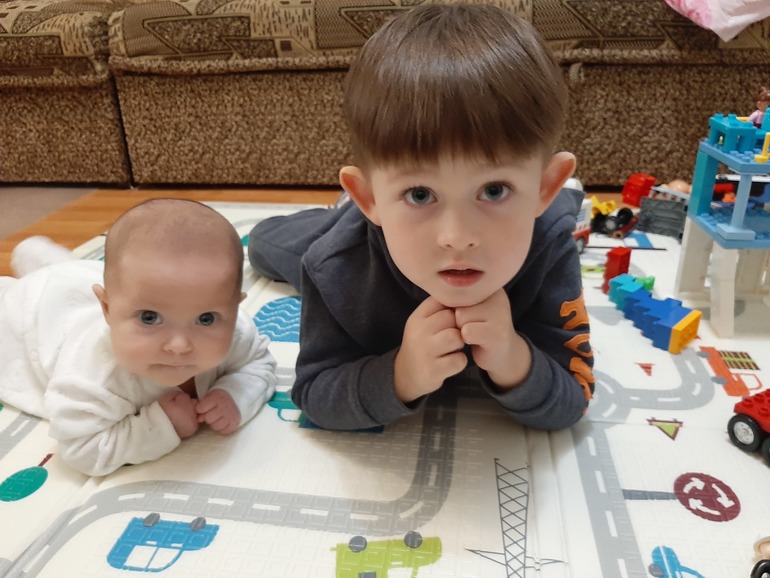 По первой беременности вас ещё помню.))). Нам 1го 3 было. Мы тоже не спешим за умелками. Зато ребёнок всегда с хорошим настроением, практически не плачет (шапка не в счёт)😊и спит хорошо. Единственное, мы оставили сына дома, без сада. У нас правда бабушки и дедушка, очень помогают. Иногда остаюсь с ними одна, сын уже может сам себя занять. Гулять, правда, сложно и одеть всех и себя. Дети милашки 🤗😍