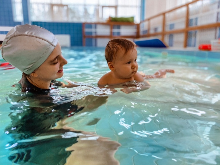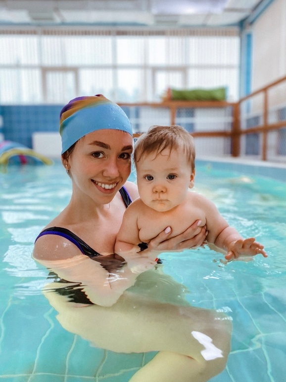 Взяли индивидуальные занятия с тренером (да, у нас есть ещё и групповое грудничковое плавание, многих это удивляет 😁).