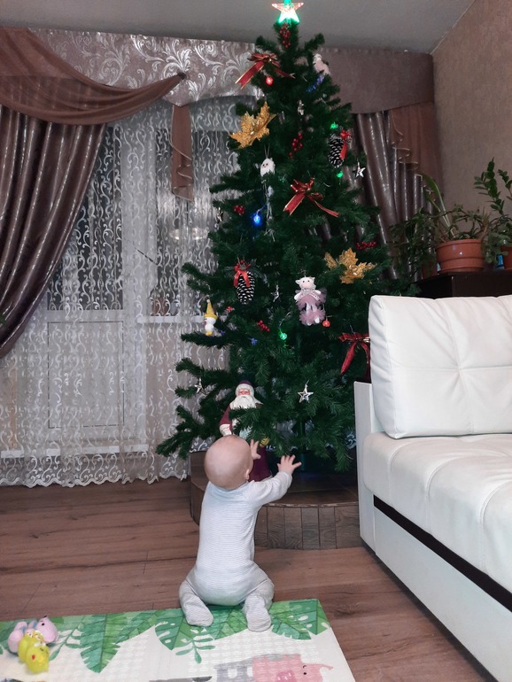 А еще мы елку поствили, смотим, а трогать боится))) А я боялась, что оборвет ))