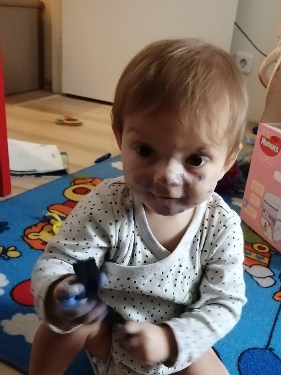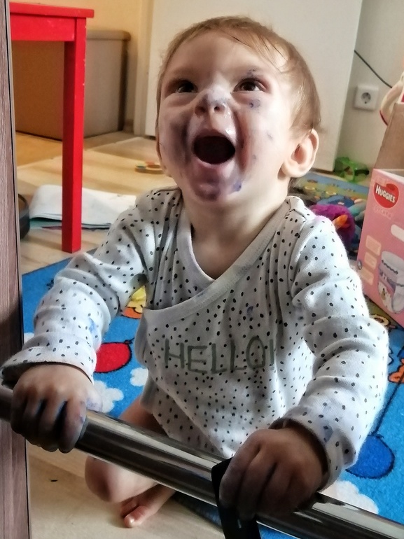 Находит фломастеры, краски, карандаши, и всё грызёт. Валя периодически раскидывает приманку, и я не всегда успеваю всё убрать. Хорошо, что Катя рядом со мной тусит обычно, многое удаётся пресекать 😬