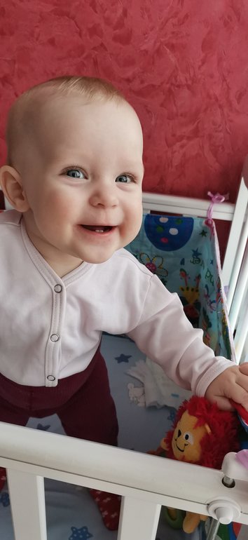 Отчёты по месяцамМоей Пипочке,моему самостоятельному Полинацараптосу 9 месяцев. 🥰🥰🥰 Чувства перекрывают меня полностью. Сухие факты: зубов 6, калякает на своём мало, волос очень мало. Ползает стрелой, ходит вдоль опоры или за две руки. На горшок ходит по принуждению, смысл его не понимает. Ест... Да все подряд. Все, что есть в тарелке у мамы, должна попробовать или обида и отвиснутая губа. (ну тут мамское сердце не выдерживает, конечно) шоколад горький нравится🤦♀️ ещё бы. Каши, супы пюре, овощи, фрукты. С кусочками сложно, в основном выплевавыет. Глатает с трудом. Начала пить соки и воду,чай травяной любит. Из ванны можно час не доставать...барахтается,пену взбивает, за мячиком гоняет. Можно сесть и попить чайку, в ванной конечно. Как похолодало, улицу любить перестали. Одеваться тоже не любит. Совсем. Спать стала реже, теперь бодрствует примерно 4 часа. Иногда сама падает на подушку и начинает песни петь заунывные. Делится соской. Если попросить, начинает сувать её в рот полностью и ржёт... Папа научил давать пять. Бабушка научила танцевать😊 стоит у опоры и жопом крутит вправо-влево... Потешно так))) С кровати слетела, хорошо коврик мягкий постелен. Не ушиблась, не плакала, упала в обнимку с подушкой. Два дня выдержала с бабушкой наедине (правда, мама говорит, что она негодовала и ползала из комнаты в комнату). А мы со старшей смотались покататься на атракционах. Сделали загранпаспорт. Еле сфотали🤦♀️ но все получилось. Надеюсь после НГ слетать на море-океан. Растёт 100% ксерокопией отца. Моего там ничего. Совсем. Обидно. И очень любит шкодничать. Шкафы наше всё... Любоффф