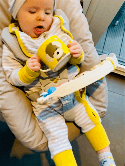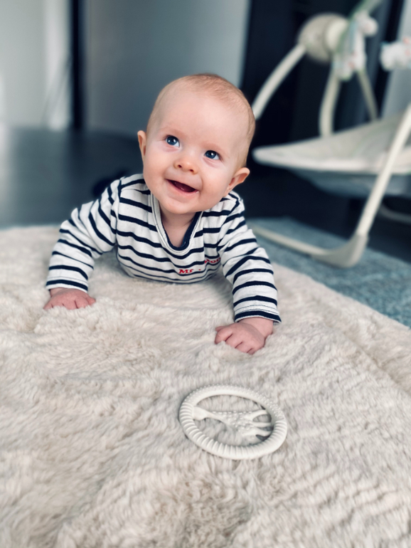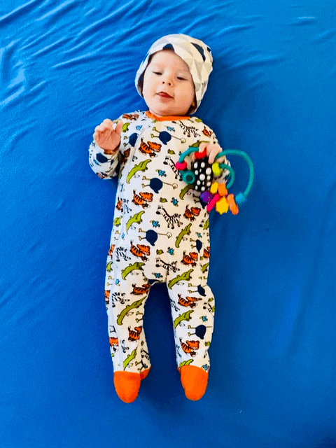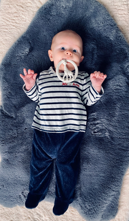 С любимым прорезывателем-жирафиком и в "именном" слипе: