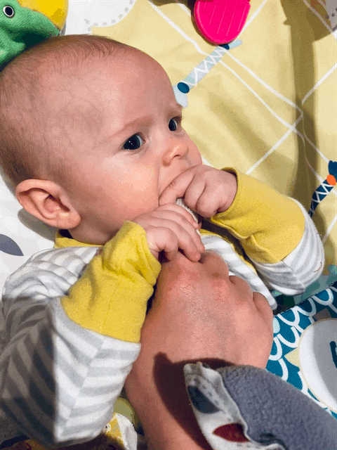 ✍️Зубы.О.... Это отдельный пункт. Теперь болезненные десна - основная помеха нормальному сну и засыпанию. А также - причина дневного нытья. Уже последние несколько вечеров и 3 ночи я вынуждена успокаивать Сашу от криков и усыплять "новым образом" - шуруя пальцем на его десне, пальцем, который он яростно грызет. Прорезыватели ему всё равно не так заходят, как палец. Мой гигиенический страх загрязнения сейчас в связи с этим обострился (всё-таки хоть я и мою руки с мылом маниакально 100 раз на дню, всё-таки пальцы во рту у малыша - это такое.. буэ...)