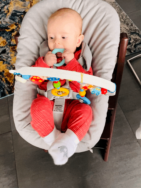 ✍️Также он начал играть-греметь погремушками!) И ему это нравится.:) Мобили же отошли как будто на 2-й план.