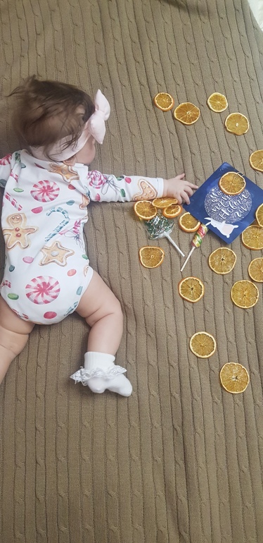 Отчёты по месяцамЭмочкой у нас папа называет крошку😍 Мне нравится, а то все Эмили, да Эмили...В общем, полгода сегодня! Епрст🙈 Куда так быстро?! Конец пятого месяца выдался для крохи не сладким😒 Заболеть короной в качестве первого в жизни орви, это я вам скажу волнительно мягко говоря😕 Для родителей конечно, малышне хоть так, хоть так приятного мало. Два дня температура 37,7, плач, капризы и ужасный сон, плюс бесконечные мамины/папины ручки и титя и вроде пережили мы эту дрянь🙏 Когда первый раз я услышала робкий довольный визг и поняла, что игривое настроение к нам вернулось, я испытала такую радость, что не передать! Что касается веса - 7200 г. Ну совсем не густо, хоть и входим в норму. Но мой опыт с первой дочкой пышечкой показывает, что могло бы быть и поболе...Предполагаю конечно, что это конституция у нас такая и кость тонкая😁 Ну не в кого ей быть пухляшей. Рост - фиг знает...Длинная😄 Одежку некоторую 74го носим уже. Кушаем также титю, попытка дать смесь на ночь не увенчалась успехом. Бутылку не берет категорически. Пюре овощные мало, не нравятся. Фруктовые на ура. Сладкоежка😊 Банан и яблоко в ниблере. Каши рисовую и гречневую с переменным успехом. Пока все. А да! И воду уже пьет гораздо лучше! Привыкла. С ложечки даю. Лепечет все активнее и разнообразнее. Из слогов все чаще слышу ма-ма. Ползать пытаемся, но все больше перекатами как-то. Сидеть не сидим. Зубов не имеем. Характер проявляем все чаще. Бывает как одарит пренебрежительным взглядом с прищуром, что аж теряюсь я😄 Погремушки швыряет только так, если не в настроении🙈 Режим сна все тот же, 3 раза днем. Ночной сон также совместный, беспокойный. И фото куколки.