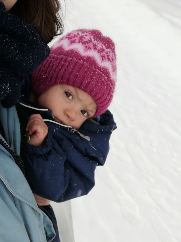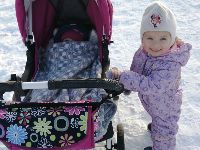 Так, конечно, без прогулок особо. На праздниках выходили, пытались снеговиков лепить с Валюхой, с горки катались. У нас пытаются сделать дорогу, с одной стороны плохо - дорогу в лес перекроют, ну с другой - сделали насыпи, с которых сейчас все катаются) Но мы редко, Катя спит на улице обычно, Валю не получается контролировать, ещё и пёс носится, так что только с папой. А он не любитель.