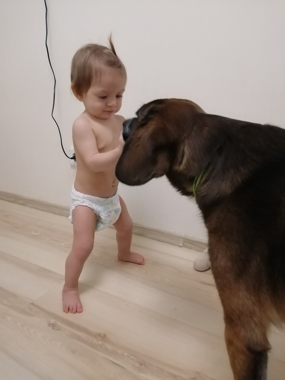 По зубам пока всё также - два снизу. Слюни текут обильно, так что ожидаю в скором времени ещё зубов. Ходить Катя не решается, иногда встанет и стоит. Хочет сделать шаг, боится, будто с на вышке 😂 За руку так и не ходит, сегодня только сделала пару шажочков, держа меня. Зато на четвереньках гоняет... Ух) Иногда на прямых ногах, очень странно 🤭