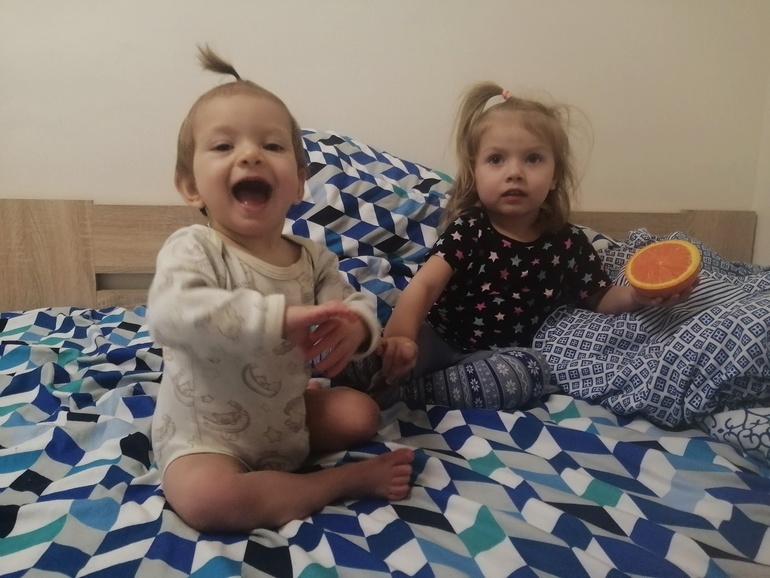 Научилась залезать на низкий диван хорошо, слезает сама. На кухонный стол забирается 🤦🏻♀️ Несколько раз свалилась, пару раз из-за Вали 😬 Валя стала много повторять за Катей, тоже ползает, хлопает, шлёпает ладошкой. Всё-таки ревность есть, причём, с Катей это совсем незаметно, но если в садике, например, меня начинают обнимать другие какие-то дети (я теряюсь в такие моменты, не отпихивать же их)), она начинает их расталкивать. Главное, что мои девочки чаще заодно😌