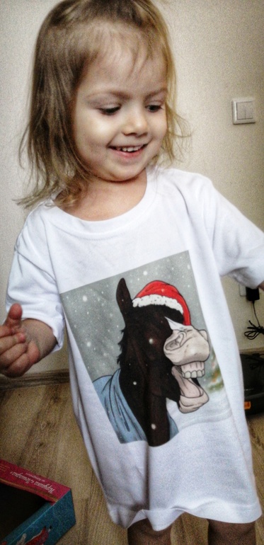 Мы там на конюшню заезжали, катались на лошадках, пока Катя спала на разных руках по очереди. Чтобы перед Валей реабилитироваться, съездили и на нашу, там ей даже футболочку подарили)