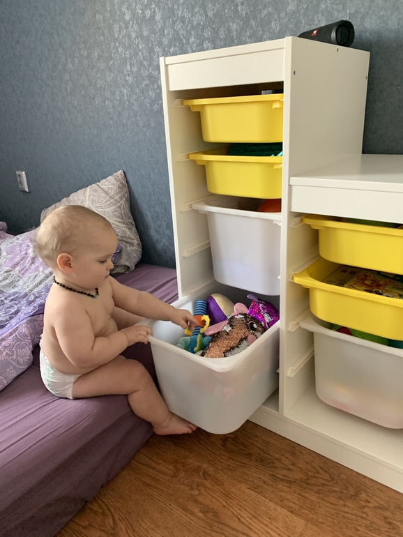Вместо комода заказала труфаст лесенку. Не хочу, чтобы игрушки валялись как попало в одном ящике. Очень меня этот момент напрягает.