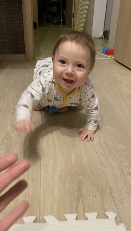 Отчёты по месяцамНачался наш седьмой месяц с новых умелок. 25.01, в 6м и 10дней Илья пополз на четвереньках сам. Буквально дня 2-3 иногда ещё плюхался на пузо и по-партизански полз, но я поднимала на четвереньки и он продолжал на 4 костях) поначалу было много движений руками-ногами, но вперёд двигался меееедлееннооо, почти на месте))) теперь гоняет на четвереньках оооочень быстро. На 3 скорости😂 знает фразу «иди сюда» и протянутые к нему руки - летит с улыбкой и визгом😄