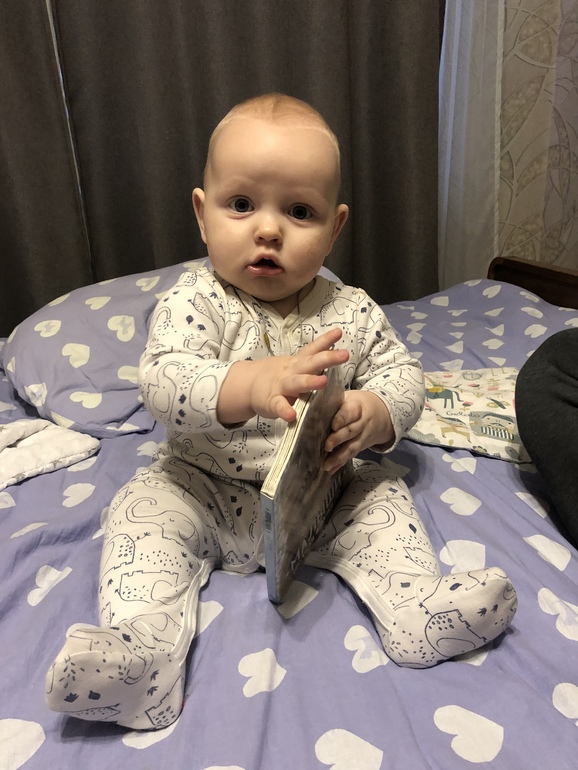 ✅ любит рассматривать книжки, хочет все повторять. Например, когда говоришь ему «это котик, он делает мяу-мяу-мяу» , он начинает говорить ма-ма-ма