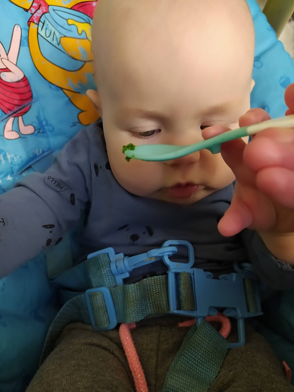 Дамочка наша капризная,конечно. Но я другого и не ожидала. Сама может поиграть в принципе 10-20 минут, но все же в основном нужно ее развлекать,причем интенсивно, носить, завлекать игрушками. Бывает,вовсе не слазит с рук. Например, когда я ем,ей обязательно нужно на ручки и засунуть руки в мою тарелку. Таким образом, она пробовала взрослую еду в микро дозах (рис,гречку, брокколи,цветную капусту,курицу,яблоко). Прикорм у нас на уровне пары ложек, вобщем пока нет как такового. Вчера празднично съела грамм 30 гречки и немного банана. Не систематично все, просто знакомимся. Но все же,нужно пробовать вводить уже нормально.
