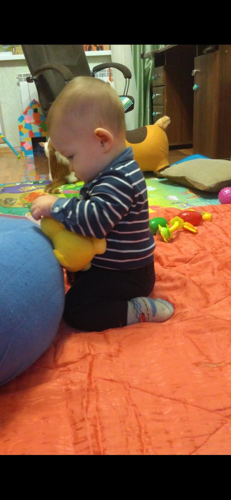 Красотуля)) а мой тоже сначала ноги переворачивал, а потом уже все тело на живот. Долго так делал. Пресс вообще не качал. Он пополз, потом встал на коленки, сел попой между пяток с прямой спиной. А с прямой спиной и вытянутыми ногами не сидит и сейчас - заваливается🤷‍♀️ дочь до 10,5 месяцев не сидела, этому скоро 9 и он туда же. Что за дети?! 😁