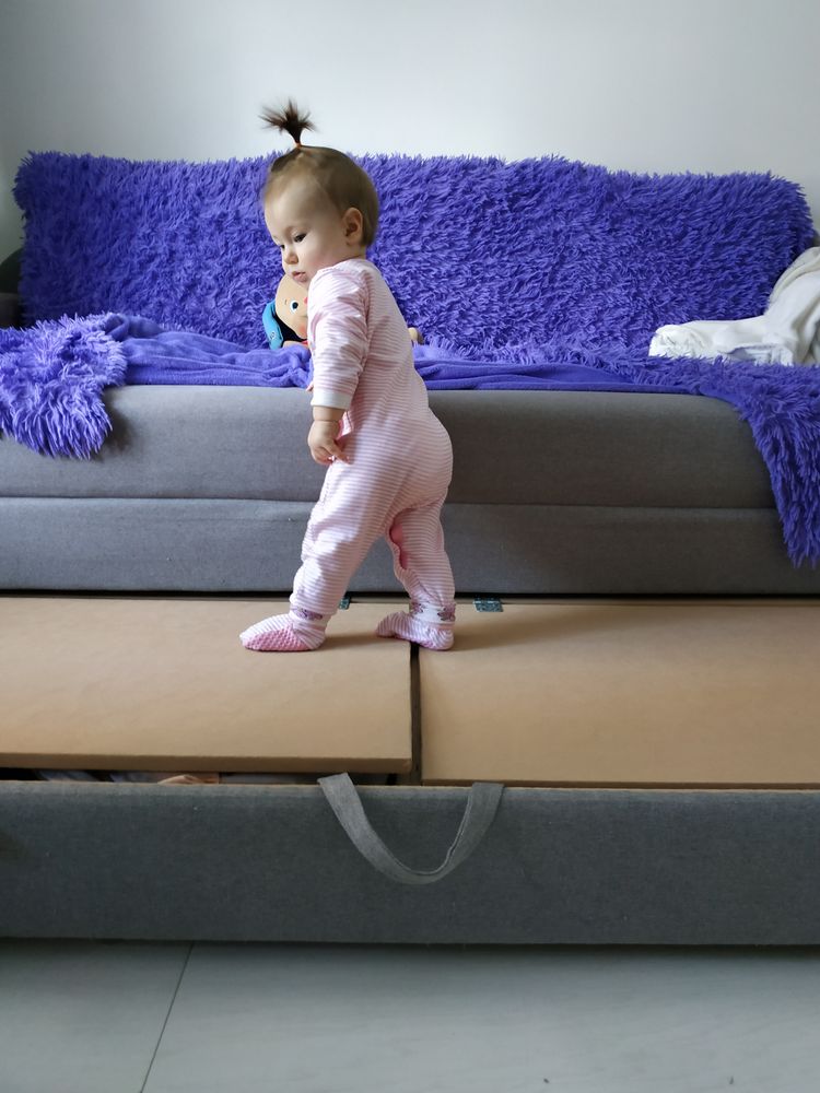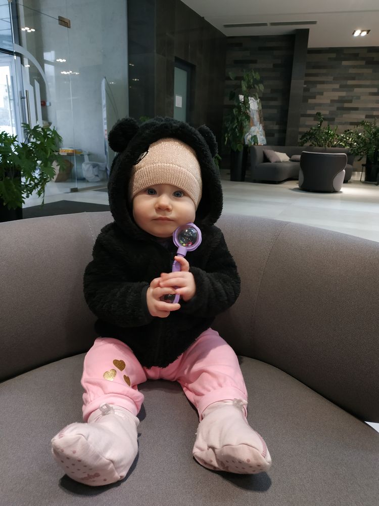 Рост 73,5, Вес аж 9 кг. 9, Карл! Это для нас прям неожиданно много). Поясню почему - последние месяцы набор веса был 100-300 грамм, а тут на тебе, +600. При том что носится дочь как электровеник и на четвереньках и вдоль опоры и залазит везде где высота позволяет. Что сказать, кушает наша детка прилично и с удовольствием ☺️.