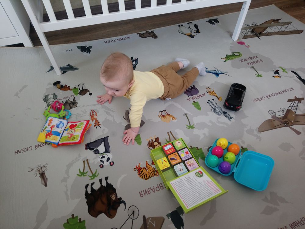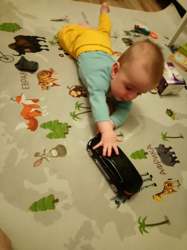 Из умелок... Ой, тяжело всё перечислить.... Ходит домиком, иногда ползает на четвереньках, сидит на приседках, встаёт у опоры, сегодня даже несколько шагов прошёл вдоль дивана🤗, особую любовь проявляет к моим тапкам, а, ну и конечно, отдельная любовь к сбору мусора с пола! 🤦🏻♀️ Убирать теперь приходится несколько раз в день. Игрушки особо не интересуют - они же всегда в свободном доступе... Никакой маниловки. Научился целоваться! 😁 Это очень мимишно: открывает ротик и в щёку целует! Прям как мороженое на солнце плывём всей семьёй от этого! 😍