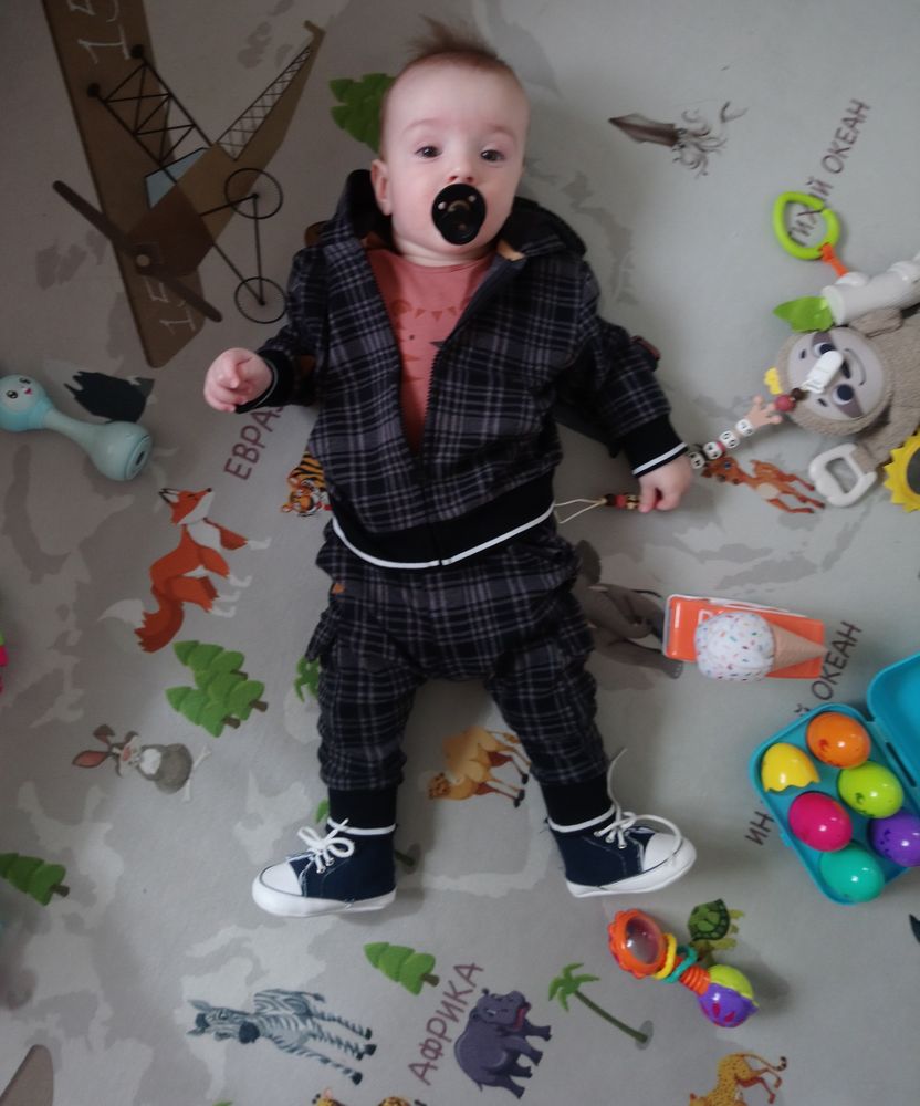 Были у педиатра, вес 8600, рост 75см. Гор у нас очень болтливый мальчишка, целый день что-то лепечет и на приёме, конечно, не молчал! Доктор была под впечатлением и очень хвалила, сказала, что для 8 месяцев он невероятно много говорит и очень чётко... Не знаю что там чёткого, я понимаю только: мама, папа, баба, дай-дай, айя-яй-яй (это когда он меня за что-то ругает 😂🙈, ну, например, вышла я из комнаты и пошла на кухню, а он парень у нас кровей царских и на голый пол не любит выползать, добрался до края коврика, а дальше нет.... И сидит на краю орёт, я вышла из кухни и говорю: что ты плачешь, а он в ответ: "айя-яй-яй") и всё, остальное разобрать мне сложно! 😊