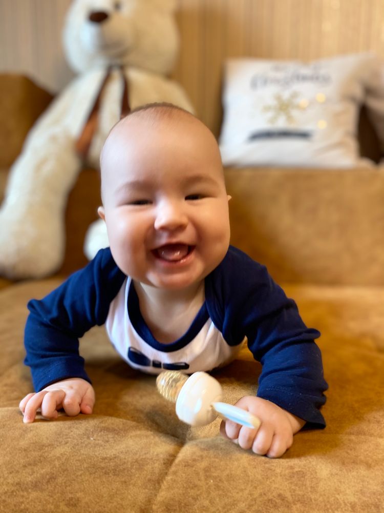 Отчёты по месяцамЗа месяц особо ничего нового, умелки такие: обожаем прыгать и стоять с поддержкой. Лежать вообще не любим, а ползти вперёд так и не получается (я пыталась помочь, но он психует и начинает плакать)😄