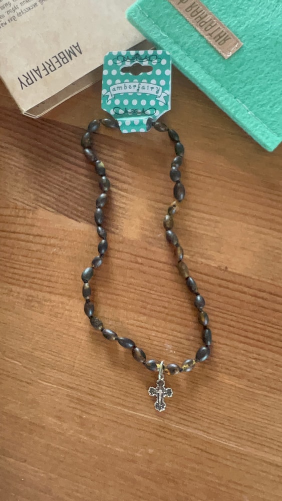 Крестик заказали с любимыми янтарными бусами у Янтарной феи. А через 10 дней, на годовщину свадьбы, подарила такие же бусы супругу. Теперь они с сыном оба красавцы в одинаковых бусах 😍