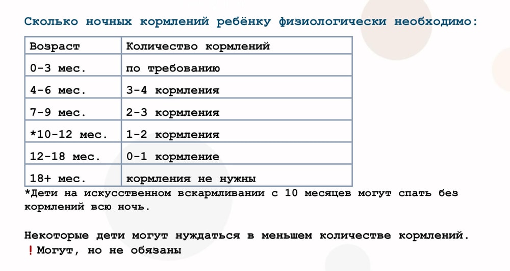 Но и здесь важно помнить: все дети разные, некоторые всё ещё могут нуждаться в 1-2 ночных кормлениях — это тоже вариант нормы.