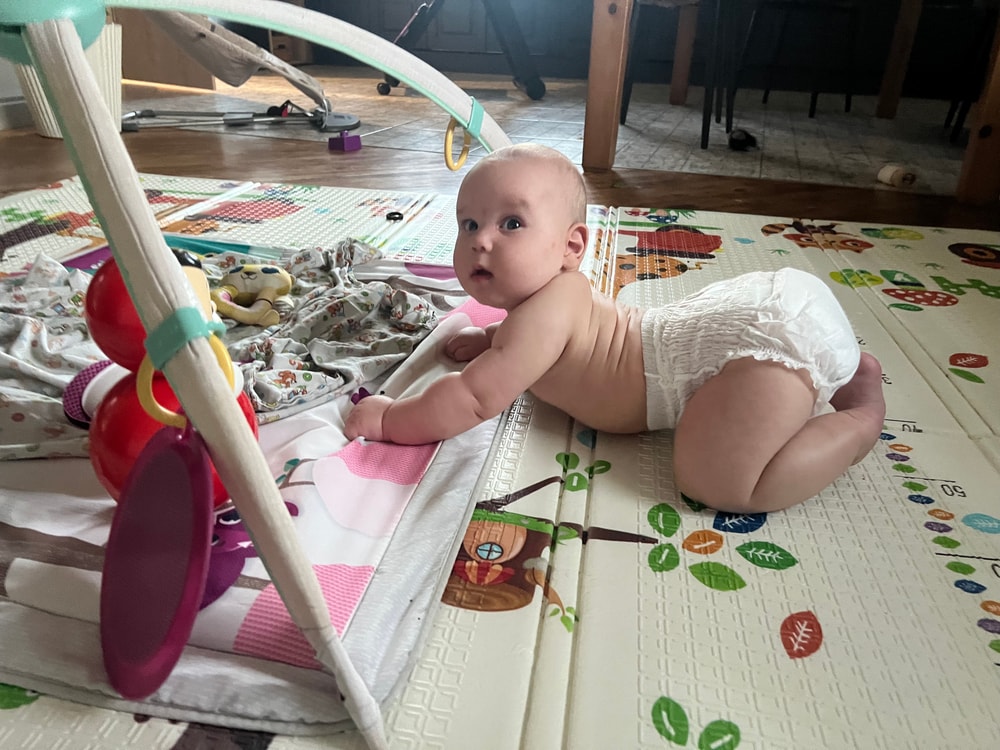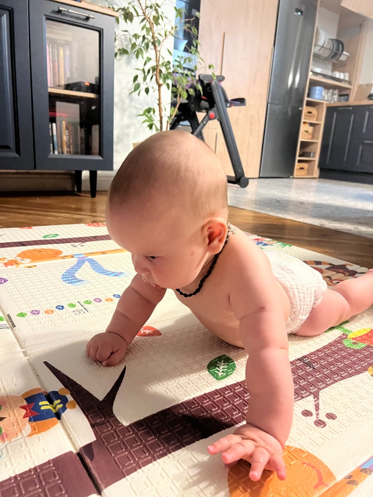 Парень подрос сильно. Но по весу у нас прям медленно идет, зато активность нарастает. Сын как будто вытягивается, а не пухнет)) вроде и вес, и рост стандартные для возраста, а размер одежды уже 80… на комбезах написано «6-9 мес»