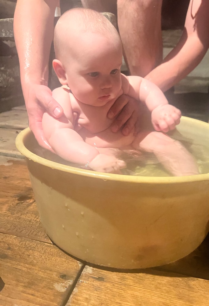Зато вчера была первая банька. Феликс не понял, но и не сопротивлялся. Воду он любит, в тазике находился с удовольствием, потом быстро уснул.