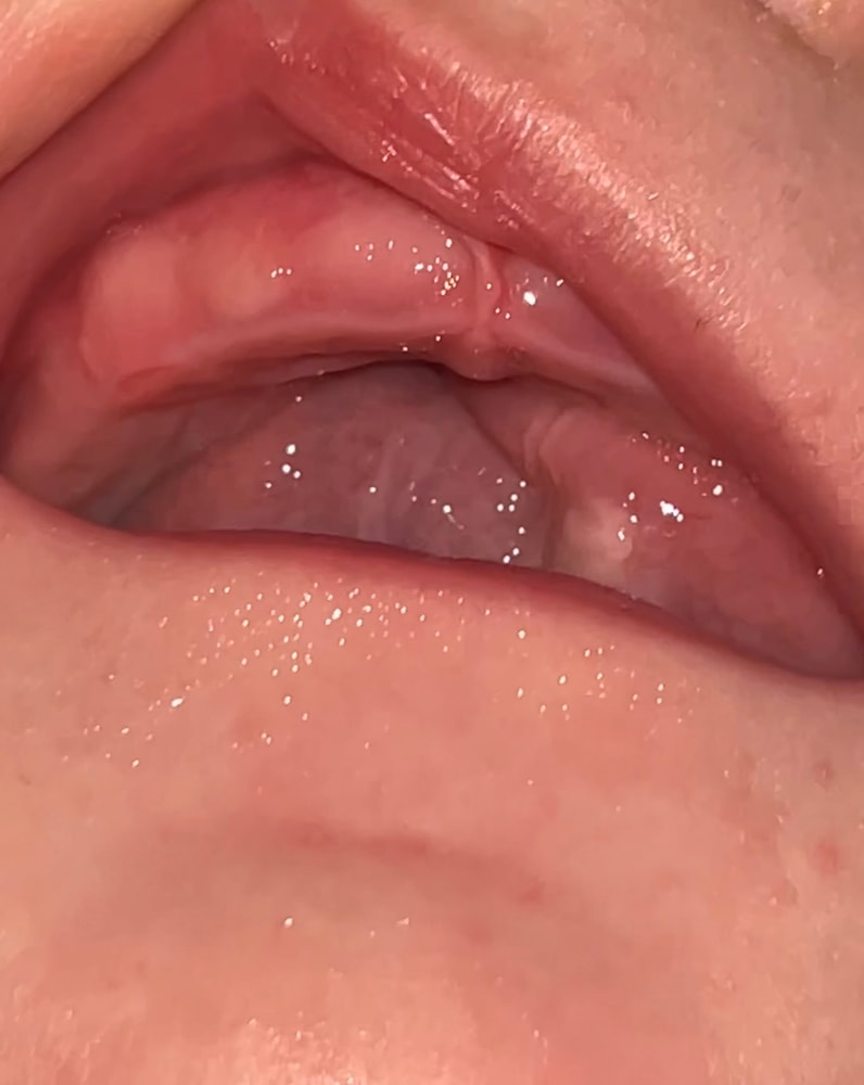 Нет, десны спокойные. Максимум, если только зубки в десны спускаются.