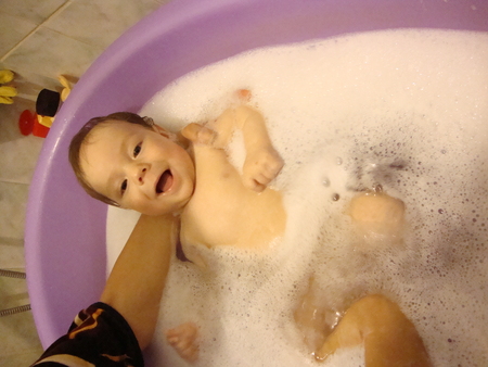 Купание- это тоже радость. Стоит только покинуть любимую ванночку и мы разражаемся недовольным криком.