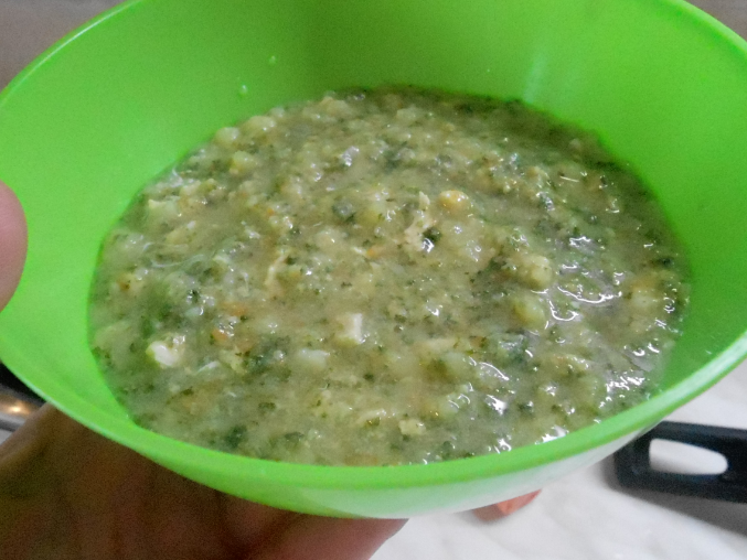 Шпинатный суп-пюре с курочкой и яичком