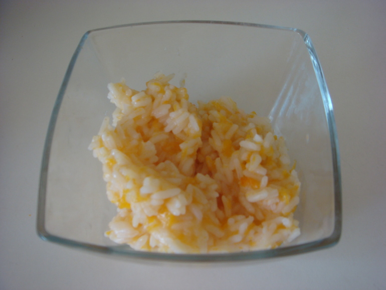 Риса полстакана+тыквы (мороженной или свежей) 1 стакан, все варим на слабом огне просто на воде без сахара и соли