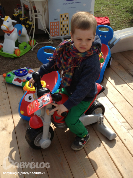 На помосте много хороших детских великов, самокатов, машинок...внутри шатра игрушки chicco. Мы пришли ок 12,на самое открытие, детишек было немного, Паша поиграл во все-все..радиоуправляемые машинки-Пашина любофф- вы поняли, мы зависли там на приличное количество времени..А на обратном пути, столько же, если не больше...Хорошо продумано, что мамы в этот момент могут поваляться на пуфах в шатре, посидеть на деревянном помосте или на шезлонгах..