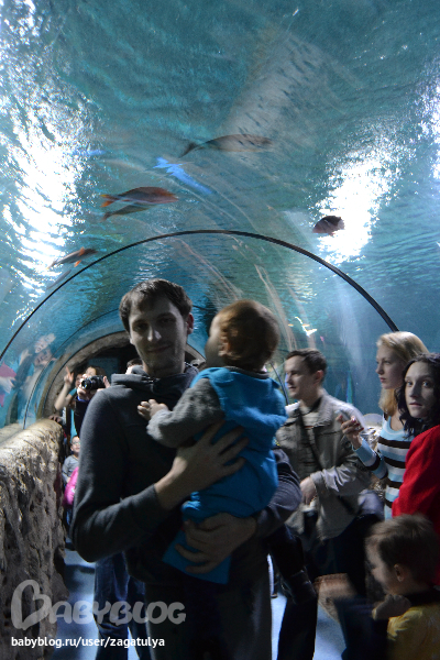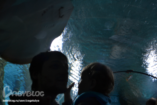Под впечатлением были и мама, и папа, и главное Степан. Каких там только рыбок не было: и маленькие пестрые, и большие монотонные, и огромные хищники. Пингвины, крокодилы, морские львы.... Акулы, мурены, скаты... Морские ежи, звезды, крабы, креветки.... Какое было удивление, что мы увидели не только водных обитателей, но еще и наземных - кенгуру, обезьянки, попугаи, птицы, еноты.... В общем посетили мини зоопарк.
