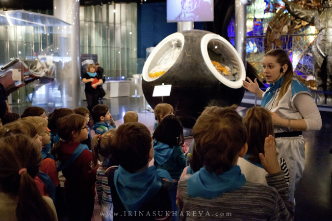 Юные путешественники узнали историю Белки и Стрелки, побывали внутри космической станции «Мир» и открыли, что едят космонавты на завтрак.