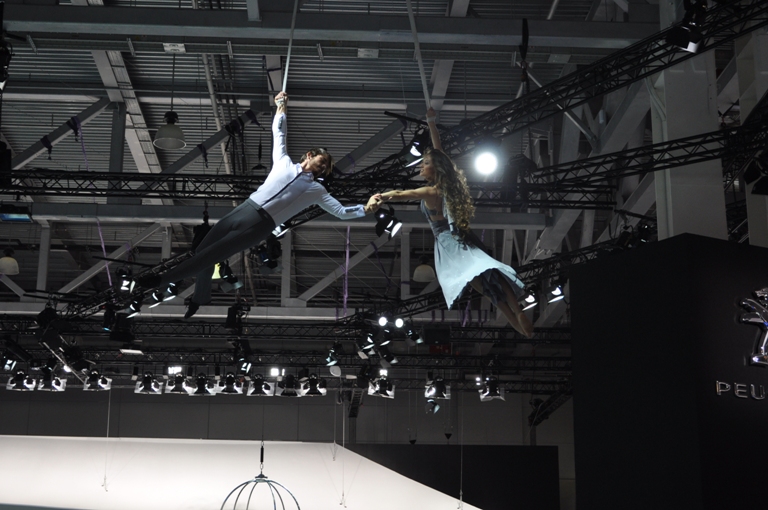 Посмотрели на воздушных акробатов на стенде Peugeot, у Chevrolet поиграли в хоккей, посмотрели на робота у Nissan.